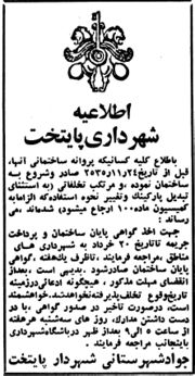 ‏۲۲ دسامبر ۲۰۱۵، ساعت ۲۲:۵۴ TehranMunicipality2537.jpg (پرونده) ۵۶۱ کیلوبایت {{PD-Iran}} رده:فرتورها رده:سال ۲۵۳۷ شاهنشاهی ۱