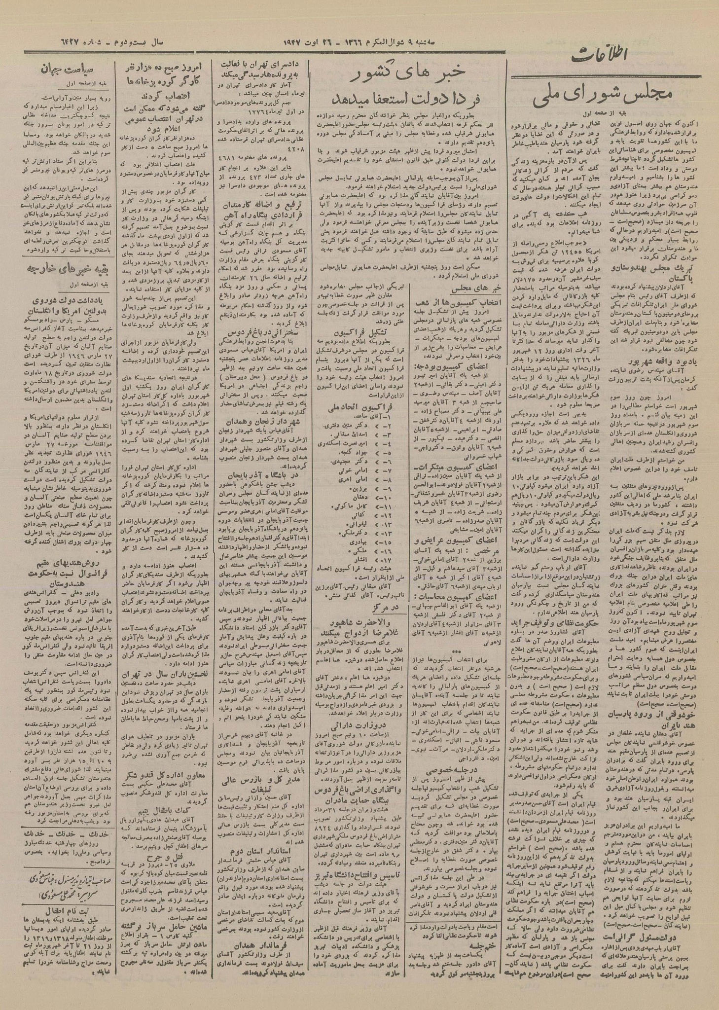 | کنونی | ۱۹ سپتامبر ۲۰۲۵، ساعت ۱۶:۲۵ | ۴٬۵۰۸×۶٬۳۶۰، ۸ صفحه (۷٫۴۷ مگابایت) | Bijan (گفتگو | مشارکتها) | == خلاصه == {{PD-Iran}} رده:روزنامه اطلاعات سال ۱۳۲۶ |