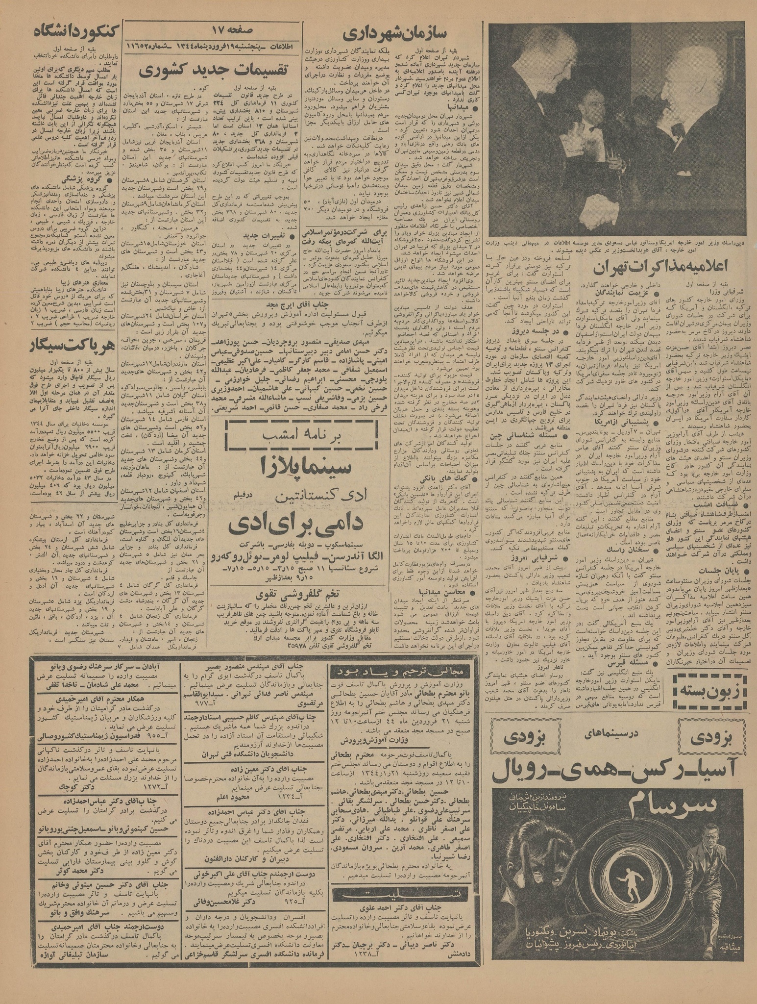 | کنونی | ۸ آوریل ۲۰۱۵، ساعت ۰۴:۱۴ | ۵٬۹۹۵×۸٬۰۱۶، ۲۰ صفحه (۳۳٫۹۲ مگابایت) | Bijan (گفتگو | مشارکتها) | {{PD-Iran}} رده:روزنامه اطلاعات سال ۱۳۴۴ |