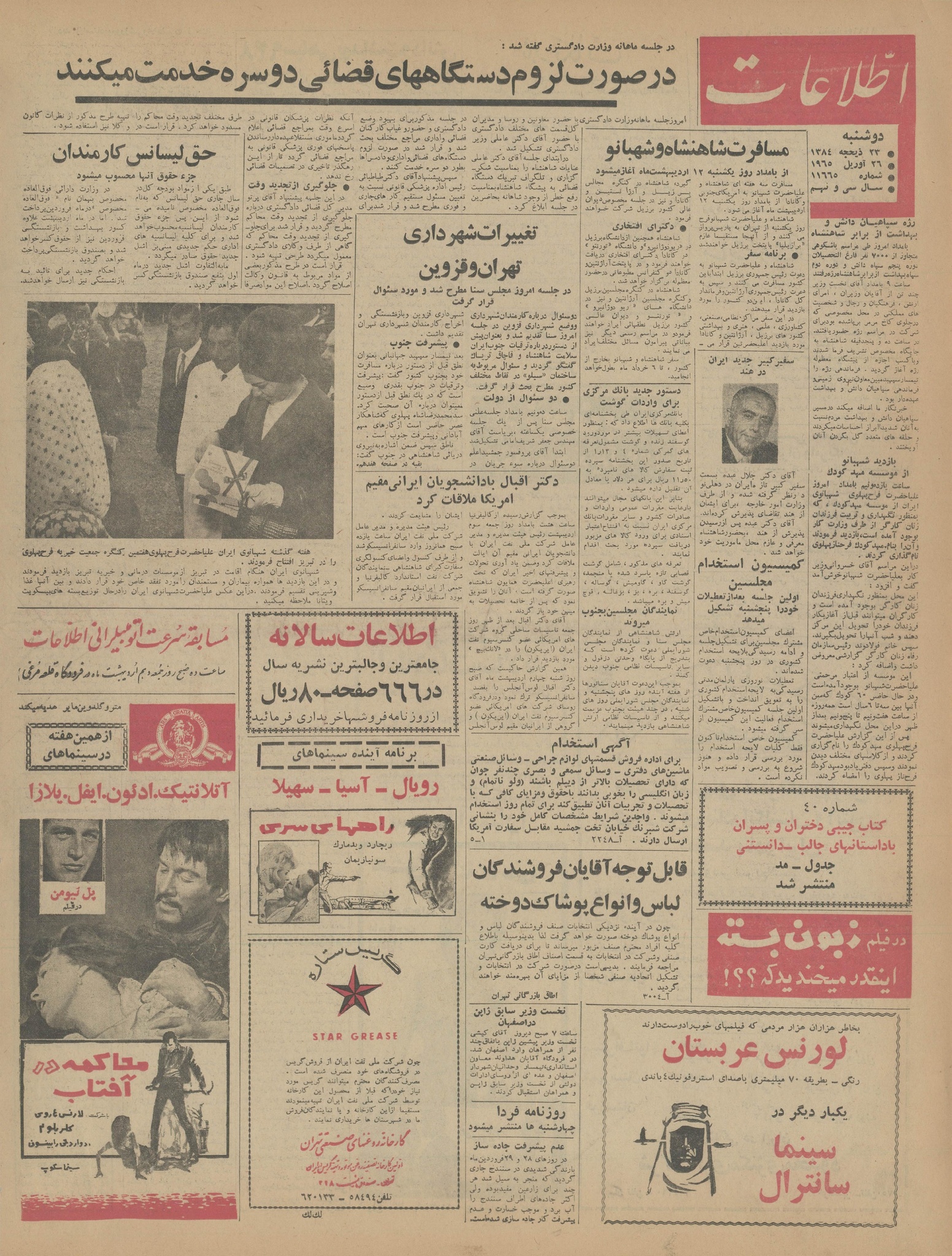 | کنونی | ۲۷ آوریل ۲۰۱۵، ساعت ۰۷:۳۴ | ۶٬۱۴۵×۸٬۰۵۰، ۲۰ صفحه (۳۲٫۳۶ مگابایت) | Bijan (گفتگو | مشارکتها) | {{PD-Iran}} رده:روزنامه اطلاعات سال ۱۳۴۴ |