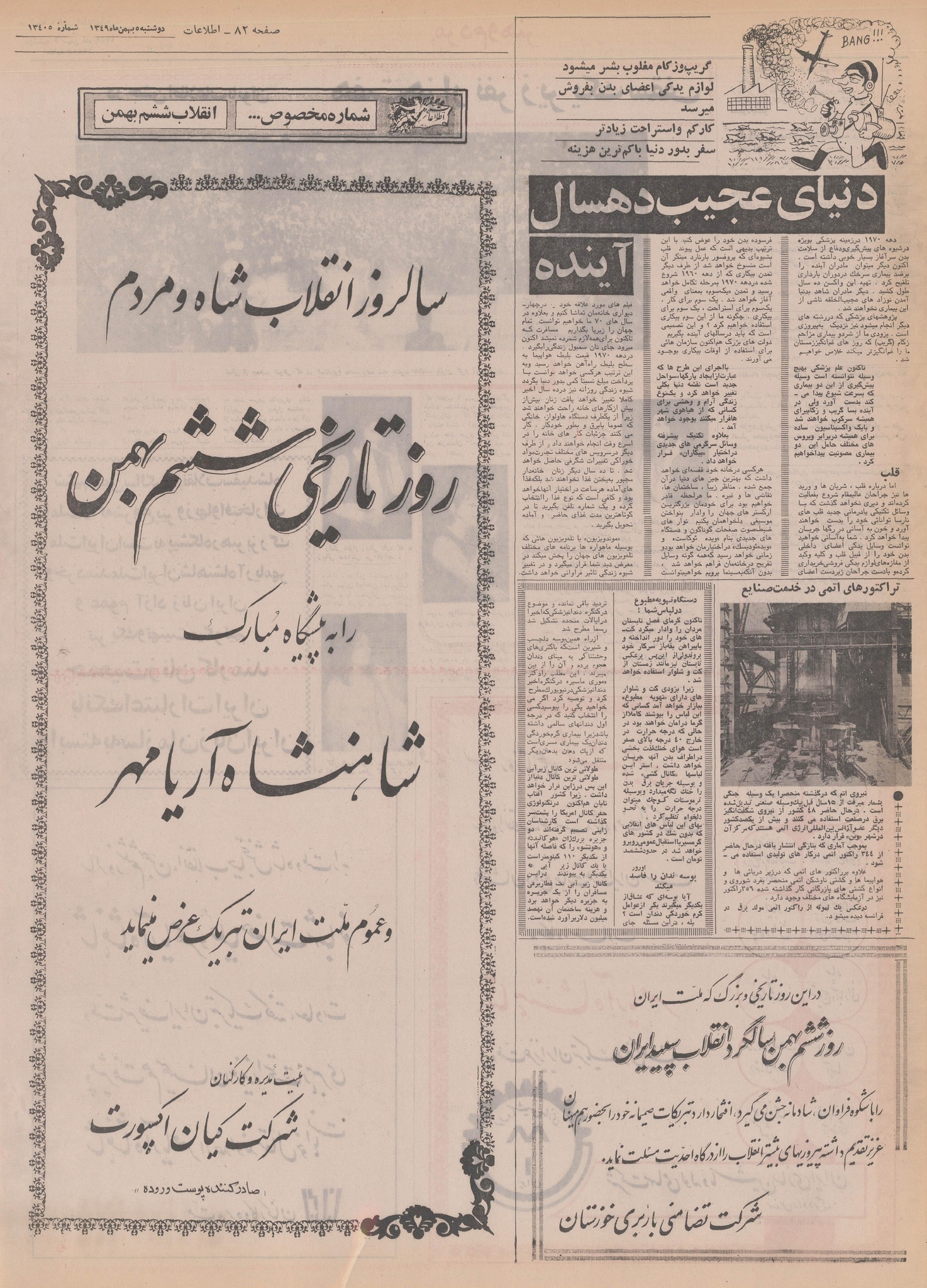 | ۲۲ اکتبر ۲۰۱۴، ساعت ۱۸:۴۱ | ۲٬۴۵۰×۳٬۴۷۷، ۴۷ صفحه (۱۲۰٫۰۶ مگابایت) | Bijan (گفتگو | مشارکتها) | {{PD-Iran}} رده:روزنامه اطلاعات سال ۱۳۴۹ |