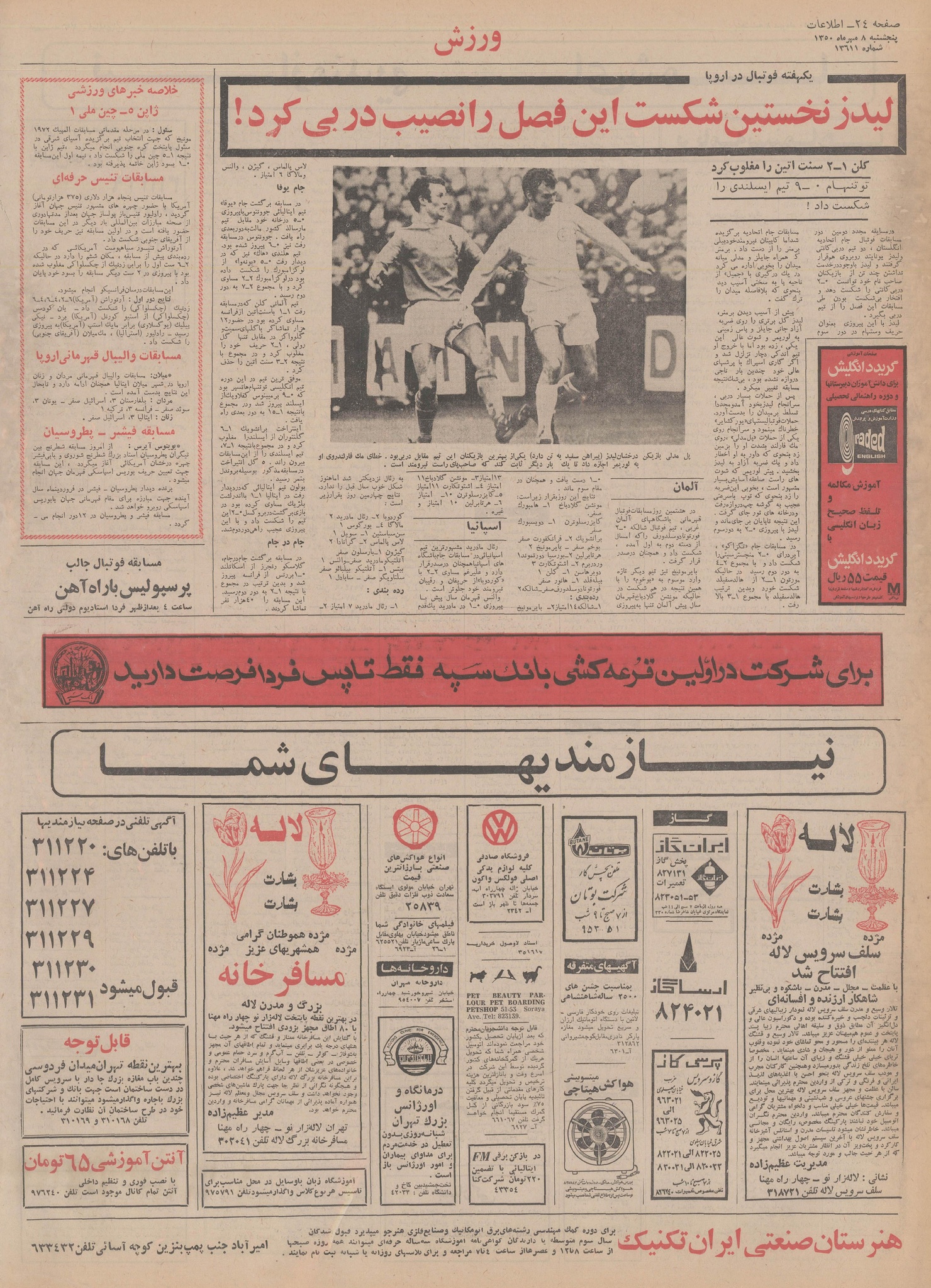 | ۲۱ اکتبر ۲۰۱۴، ساعت ۰۹:۴۳ | ۲٬۴۵۶×۳٬۵۲۷، ۱۷ صفحه (۴۳٫۷۱ مگابایت) | Bijan (گفتگو | مشارکتها) | {{PD-Iran}} رده:روزنامه اطلاعات سال ۱۳۵۰ |
