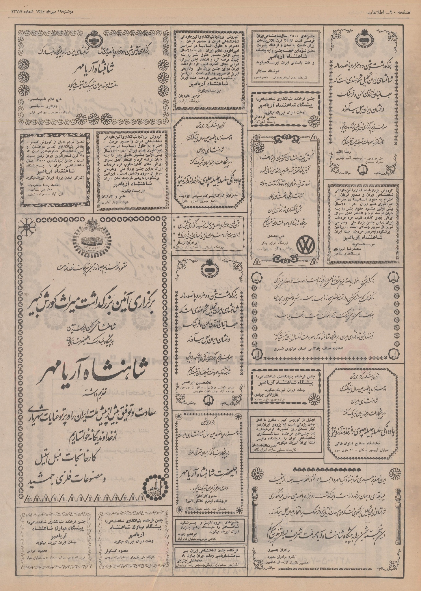 | ۲۱ اکتبر ۲۰۱۴، ساعت ۱۵:۵۳ | ۲٬۴۲۰×۳٬۵۲۷، ۱۱ صفحه (۲۶٫۷۶ مگابایت) | Bijan (گفتگو | مشارکتها) | {{PD-Iran}} رده:روزنامه اطلاعات سال ۱۳۵۰ |