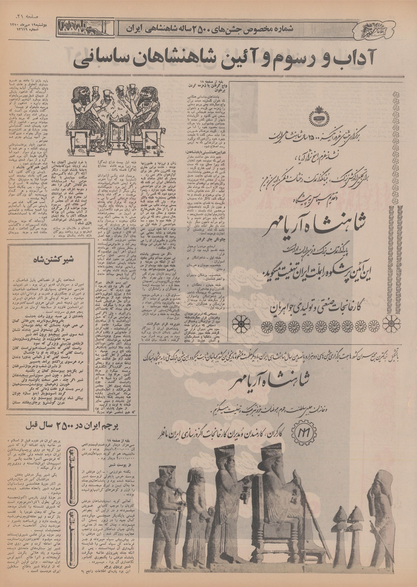 | ۲۱ اکتبر ۲۰۱۴، ساعت ۱۵:۵۳ | ۲٬۴۲۰×۳٬۵۲۷، ۱۱ صفحه (۲۶٫۷۶ مگابایت) | Bijan (گفتگو | مشارکتها) | {{PD-Iran}} رده:روزنامه اطلاعات سال ۱۳۵۰ |