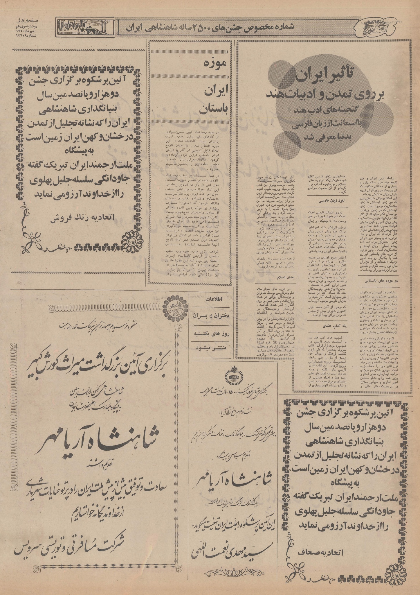 | ۲۱ اکتبر ۲۰۱۴، ساعت ۱۵:۵۳ | ۲٬۴۲۰×۳٬۵۲۷، ۱۱ صفحه (۲۶٫۷۶ مگابایت) | Bijan (گفتگو | مشارکتها) | {{PD-Iran}} رده:روزنامه اطلاعات سال ۱۳۵۰ |