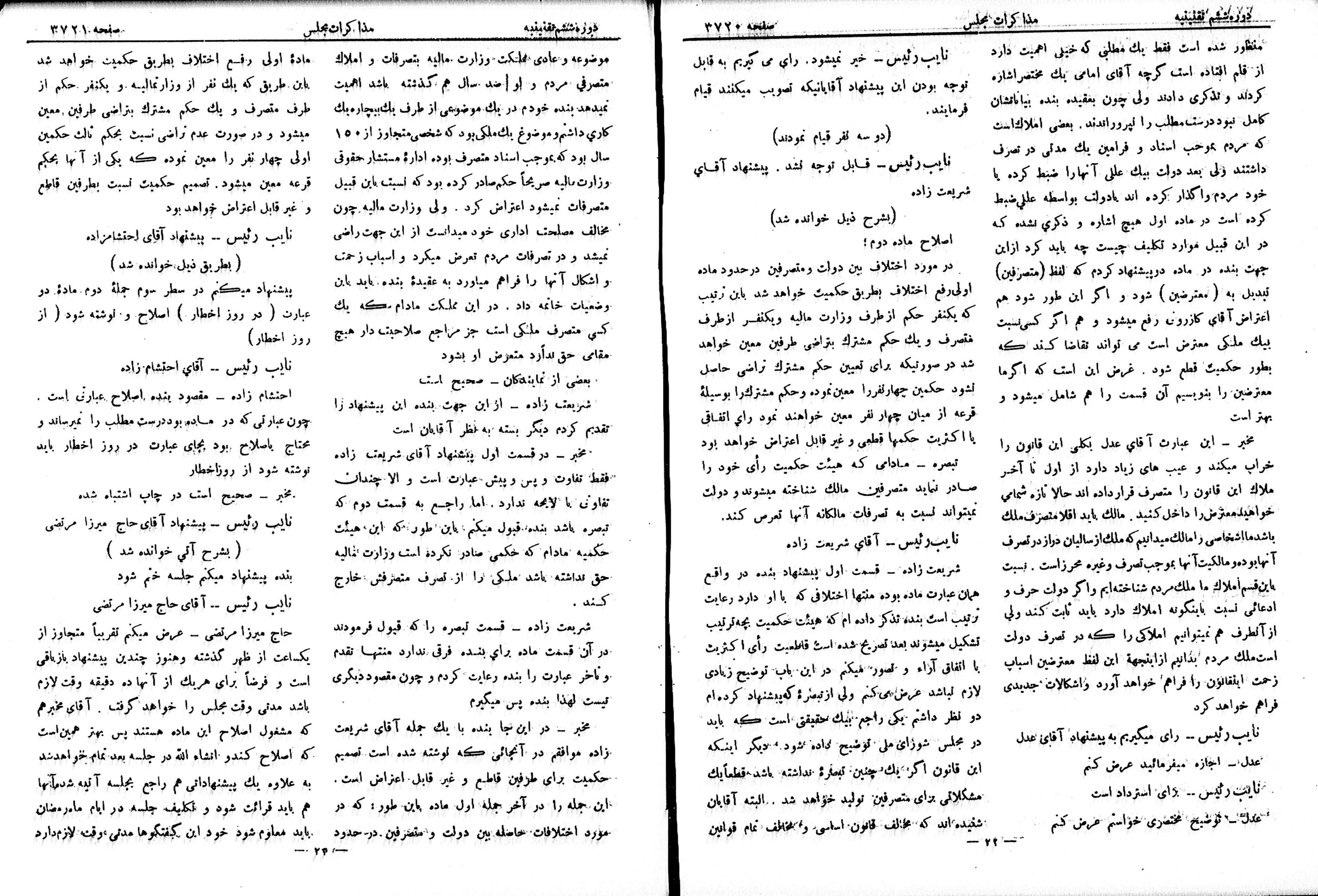 | کنونی | ۱۳ ژوئیهٔ ۲۰۱۳، ساعت ۱۹:۲۹ | ۴٬۰۴۱×۵٬۴۴۳، ۱۶ صفحه (۱۶ مگابایت) | Bijan (گفتگو | مشارکتها) | {{PD-Iran}} رده:مجلس شورای ملی مذاکرات دوره قانونگذاری ششم - ۱۹ تیر ۱۳۰۵ تا ۲۲ امرداد ۱۳۰۷ |