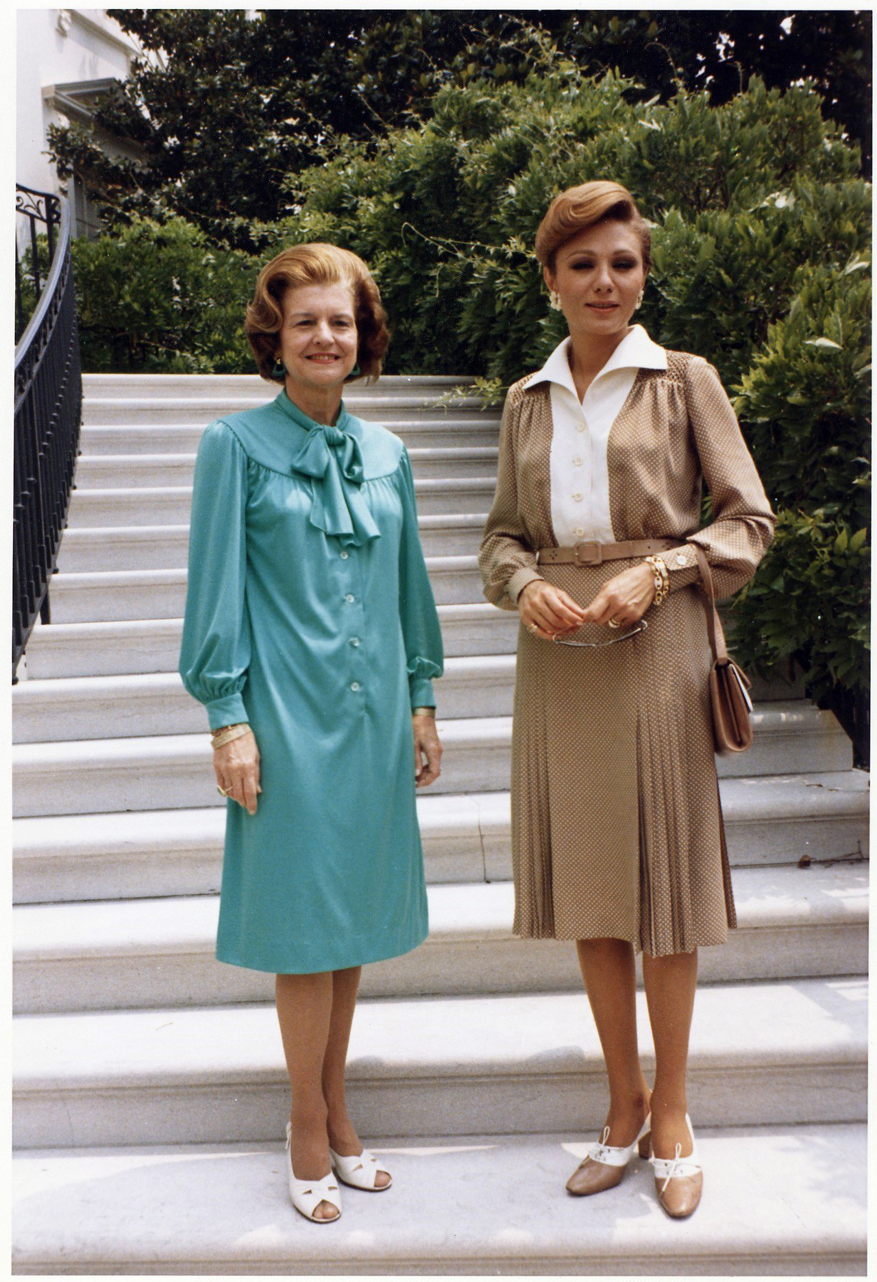 پرونده:ShahbanouFirstLadyBettyFordOnTrumanBalconyStepsOrdibehesht1354.jpg