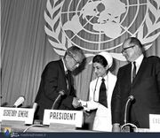 مجمع عمومی سازمان ملل متحد به شما وظیفه ارجمندی را واگذار کرده است، که پخش عادلانه تر سرمایههای انسانی بر روی کره زمین و رسیدن به انسانی کردن کره زمین است.