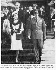 [[پرونده:ShahanshahShahbanouReceptionMinistryForeignAffairs1340.jpg|thumb|left|180px|اعلیحضرتین در میهمانی وزارت خارجه]] | |||