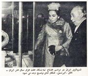 [[پرونده:ShahbanouSevenThousandYearsIranianArtParis1340.jpg|thumb|left|180px|شهبانو در آیین گشایش هفت هزار سال هنر ایران و گیرشمن ایران شناس]] | |||