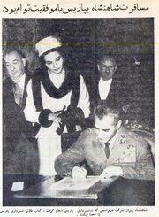 [[پرونده:ShahshahShahbanouOfficialDinnerParis19Mehr1340a.jpg|thumb|left|180px|]] | |||
