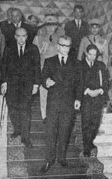 [[پرونده:ShahanshahMashhadAirport1345a.jpg|thumb|left|160px|شهردار مشهد به شاهنشاه خوشآمد میگوید]] | |||