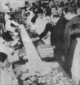 [[پرونده:HoveydaFactoryTolidardou1345a.jpg|thumb|left|160px|هویدا در کارخانه تولیدارو]] | |||