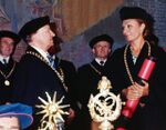 [[پرونده:ShahbanouDoctoralDegreeUniPrag2536a.jpg|thumb|left|150px|فراداشت درجه دکترای فلسفه دانشگاه پراگ به علیاحضرت شهبانوی ایران]] | |||