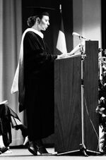 [[پرونده:ShahbanouDoctoralDegreeUniPrag2536.jpg|thumb|left|150px|سخنرانی علیاحضرت شهبانو هنگام دریافت درجه دکترای فلسفه از دانشگاه پراگ]] | |||