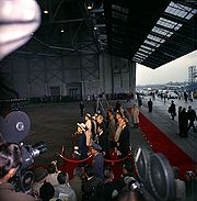 [[پرونده:JFKWHP-AR7165-E.jpg|thumb|left| | [[پرونده:JFKWHP-KN-C20957.jpg|thumb|left|180px|آیین پیشباز از شاهنشاه در واشنگتن]] | ||