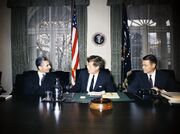 [[پرونده:ShahanshahUSKennedyMeeting23Farvardin1341b.jpg|thumb|left|180px|گفتگوهای شاهنشاه ایران و کندی. رابرت مک نامارا وزیر دفاع آمریکا]] | |||