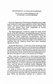 - ↑ Lucein George, Interview of Ayatollah Khumayni, with the Correspondent of Le monde, 1978, Publisher: Liberation Movement of Iran