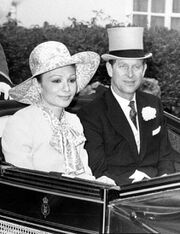 [[پرونده:ShahbanouArrivalLeavingHeathrowDukeofEdinburgh1351.jpg|thumb|left|180px|شهبانو و پرنس فیلیپ از فرودگاه رهسپار کاخ سلطنتی می شوند]] | |||