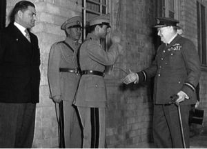 [[پرونده:Shah | [[پرونده:Tehran Churchill Shah Soheili.jpg|thumb|left|چرچیل در تهران به دیدار [[محمدرضا شاه پهلوی]] میرود، سهیلی نخستوزیر ایران نیز در این دیدار در رکاب پادشاه بود]] | ||