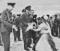 [[پرونده:ShahanshahMashhadAirport1345a.jpg|thumb|left|160px|شهردار مشهد به شاهنشاه خوش‌آمد می‌ گوید]]