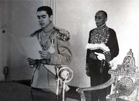 | * | | *[[پرونده:MohammadRezaShahPahlaviOath25Shahrivar1320.jpg|thumb|left|280px|سوگند محمدرضا شاه پهلوی به نگاهبانی از قانون اساسی سکولار مشروطه ایران ۲۶ شهریور ۱۳۲۰]] |