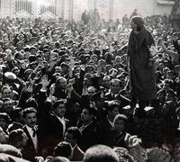 [[پرونده:MarmarPalace.jpg|thumb|left|200px|مردم ایران دروازههای کاخ مرمر را میبندند و از رفتن شاهنشاه جلوگیری میکنند]] | |||
