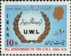 [[پرونده:Stamps10thAnniversaryUWL.jpg|thumb|left| | [[پرونده:Stamps10thAnniversaryUWL.jpg|thumb|left|240px|تمبر دهمین سالگرد لژیون خدمتگزاران بشر]] | ||