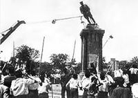 [[پرونده:MossadeghTudeh25Amordad1332SepahSq2.jpg|thumb|left|200px|جبهه ملی و توده‌ای‌ها پیکره رضا شاه بزرگ در میدان سپه را پایین می‌آورند]]