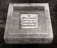 هنگام شاهنشاهی پادشاه ایران رضا شاه پهلوی سردودمان پهلوی، ساختمان دانشگاه تهران به فرمان او آغاز و این نبشته که به یادگار در دل سنگ جای گرفته، به زمین سپرده شد. بهمن ماه یک هزار و سیصد و سیزده خورشیدی | |||
