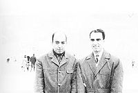 [[پرونده:HezarkhaniPishdadFrance1344.jpg|thumb|left|200px|از راست: امیر پیشداد سردبیر نامه پارسی و منوچهر هزارخانی همبند هیات دبیران در کنگره کنفدراسیون در کاخ ورسای ۱۳۴۴]] | |||