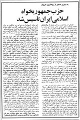 ۲۵ بهمن ماه ۲۵۳۷ حزب جمهوریخواه اسلامی بنیاد نهاده شد. محمد جواد باهنر و سید محمد بهشتی و سیدعلی خامنهای و سیدعبدالکریم موسوی و اکبر هاشمی رفسنجانی حزب جمهوری اسلامی را بنیاد نهادند و از روز سه شنبه یکم اسفند ماه ۲۵۳۷ شاهنشاهی در دفتر حزب در میدان کندی خیابان پرچم ساختمان توحید آغاز به ثبت نام عضو برای حزب کردند.