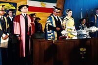 [[پرونده:ShahanshahHonoraryDoctorateLiteratureUniversity28Dey1346.jpg|thumb|left| | [[پرونده:ShahanshahHonoraryDoctorateLiteratureUniversity28Dey1346.jpg|thumb|left|200px|فراداشت درجه دکترای ادبیات دانشگاه مالایا کوالالامپور]][[پرونده:ShahanshahHonoraryDoctorateLiteratureUniversity28Dey1346a.jpg|thumb|left|200px|سخنرانی شاهنشاه آریامهر پس دریافت درجه دکترای ادبیات ]] | ||