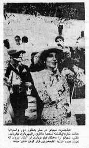 - ↑ مصاحبه علیاحضرت شهبانو فرح پهلوی با زنان روزنامه نگار و نمایندگان رادیو و تلویزیون استرالیا در کانبرا ۴ مهر ماه ۱۳۵۳