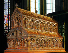 [[پرونده:Shrine3IraniansDomChurch1.jpg|thumb|left|220px|سه ایرانی دانشمند در آرامگاه طلایی در کلیسای دوم شهر کلن]] | |||