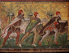 در انجیل متا از سه پادشاه گفتگویی در میان نیست بلکه از سه مجوس – سه زرتشتی سه ایرانی. در نوشتارهای مسیحیان سوریهای نام این سه ایرانی نیز آورده شده است. لاونداد – هُرمیسداس و گُشناسب | |||