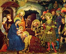 [[پرونده:IranianScientistsBringGifts.jpg|thumb|left|220px|گشناسب، هرمیسداس و لاونداد پیشکش برای عیسی میبرند]] | |||