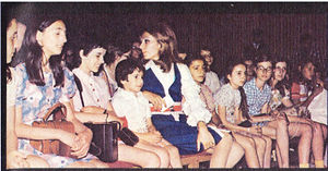 [[پرونده: FarahKanun.jpg|thumb|left|شهبانو همراه با فرحناز و لیلا پهلوی در مسابقه تاتر کتابخانه نیاوران]]
