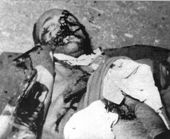 تا ساعت ۴ و ۱۵ دقیقه دستهها پشت سر هم وارد میشدند نوحه میخواندند و خود را تکه پاره میکردند و میرفتند. در گرماگرم این قمهزنیها و زنجیرزنیها، هژیر وزیر دربار، آقای ظهیرالاسلام، شکرایی، آقای غضنفر علی خان سفیر کبیر پاکستان همه پهلوی یکدیگر در کنار ورودی شبستان ایستاده بودند. در این هنگام حسن امامی تروریست همان قاتل کسروی که در روز روشن در دادگستری احمد کسروی را به قتل رسانید و احمد قوام نخست وزیر مغول همه چیز را پنهان کرد، با هفت تیری که در دست داشت، گلولهای به قلب هژیر نشانه رفت، باز هم خواست که هفت تیر را بچکاند ولی تیرهای دیگر در لوله گیر کرد.