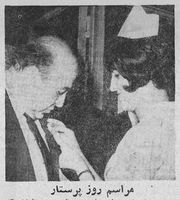 - فرارسیدن روز پرستار را به همه خواهران عزیز پرستار تبریک میگویم. پرستاری خدمت انسانی و حرفهای شریف و مقدسی است که تنها به خاطر ارج مادی نمیتواند انجام گیرد. پاداش حقیقتی یک پرستار شادی و رضایتی است که در قلب خود از خدمت به هم نوعان دردمند و بیمار احساس مینماید به همین دلیل امروز هر قدر که اجتماعات از لحاظ تمدن و فرهنگ ترقی میکنند حیثیت معنوی و ارزش حرفه پرستاری بالا میرود. خوشبختانه در مملکت ما نیز خدمت انسانی و پر ارج شما تدریجا مقام و قدر شایسته خود را بازمییابد. خانوادههای ایرانی بیش از پیش دختران خود را به فراگرفتن این فن مقدس تشویق و ترغیب مینمایند و با تاسیس آموزشگاههای پرستاری مجهز هر روز شماره پرستاران تحصیل کرده و کاردان افزایش مییابد دلسوزی و علاقمندی و ایمان شما پرستاران عزیز در انجام رسالت اجتماعی و خدمت هیری که به عهده گرفتهاید بیش از پیش توجه و احترام هموطنان را به اهمیت معنوی و ارزش انسانی کار پرستاری جلب خواهد کرد. امیدوارم ارج و قدر معنوی حرفه پرستاری روز به روز در جامعه ما بیشتر مورد توجه قرارگیرد و در چنین روزی عموم هموطنان در کنار پرستارانی که روز حرفه خود را با غرور و سربلندی جشن می گیرندف به عظمت و فداکاری خواهران عزیزی که زندگی و راحت و آسایش خود را برای خدمت به انسانهای رنجور و دردمند وقف کردهاند بیاندیشند.