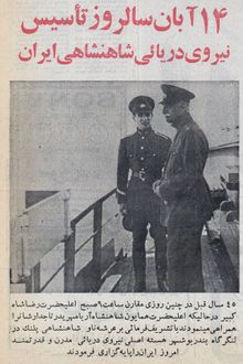 نیروی دریایی شاهنشاهی ایران - در روز ۱۴ آبان ماه ۱۳۱۱ اعلیحضرت همایون رضا شاه پهلوی به همراه ولیعهد ایران محمدرضا پهلوی ساعت ۹ بامداد گام بر عرشه ناو شاهنشاهی پلنگ در لنگرگاه بندر بوشهر نهادند و نیروی دریایی شاهنشاهی ایران را بنیان گزاردند.