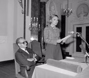 اظهار اطمینان شما در این باره که حسن نیت و پیوستگی ملت‌ها و مردم صلح‌دوست جهان، سرانجام می‌تواند همه مشکلات ما را حل کند مایه خوشوقتی قلبی من است، زیرا به هر حال این آرزویی است که هر فرد نیک اندیشی در هر جای جهان، در عصر آشفته ما باید داشته باشد. حقیقت این است که برای حل آن مشکلات راه دیگری در دنیایی که به طور روز افزون با کابوس سلاح‌های وحشتناک تخریبی روبرو است وجود ندارد.