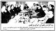 رهبران ایران و چین پس از آنکه نیم ساعت بطور خصوصی گفتگو کردند، همراه با هیئتهای نمایندگی دو کشور، مسائل مورد علاقه ایران و چین را مورد بررسی قرار دادند. از سوی ایران، وزیران امور خارجه، بازرگانی، گروهی از معاونان این دو وزارتخانه و از سوی جمهوری خلق چین، قائم مقام رئیس شورای دولتی و کمیته ملی، رئیس کمیته انقلابی استان «سچو آن» وزیر خارجه و چند تن از مقامات وزارت خارجه و بازرگانی حضور داشتند. سفیر ایران در چین و سفیر جمهوری خلق چین در دربار شاهنشاهی نیز در این گفتگوها حضور داشتند.