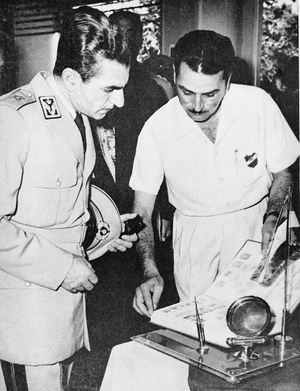 - ↑ بیانات اعلیحضرت همایونی شاهنشاه محمد رضا شاه پهلوی هنگام گشایش نمایشگاه اتم در خدمت صلح ۱۵ اسفند ۱۳۳۴