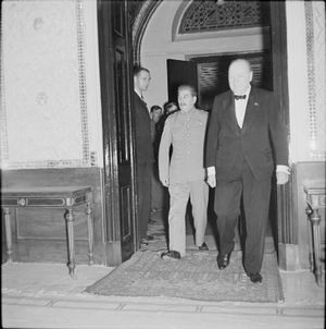 ساعت هفت و چهل و پنج دقیقه بعد از ظهر به فراخوانی (دعوت) استالین رئیس شورای کمیسرهای اتحاد جماهیر شوروی، چرچیل به همراهی ایدن و کلارک به سفارت شوروی رفتند و شام را با استالین و مولوتف و ورسیلف و هم چنین روزولت و هری هاپکینز و دریاسالار لیهی خوردند.