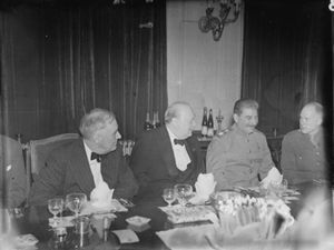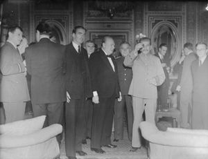 چرچیل نخست وزیر انگلستان برای دیدار با روزولت رئیس جمهور امریکا به سفارت شوروی رفت و پس از گفتگو ناهار را نیز با هم خوردند. چرچیل نخست وزیر انگلستان به همراهی رئیس ستاد امپراتوری، سر اندرو کانینگهام ارد اول دریاداری، سرجان پورتال فرمانده نیروی هوایی، ایدن وزیر امور خارجه انگلستان به سفارت شوروی رفتند و با مولوتف کمیسر خارجه شوروی در جبهه لنینگراد و هری هاپکینز مشاور ویژه رئیس جمهور امریکا به گفتگوهای آغازین پرداختند. چرچیل پس از گفتگو با بلندپایگان شوروی، دوباره در سفارت شوروی با روزولت دیدار و گفتگو کرد.