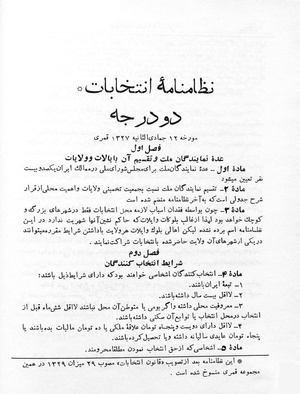 نظامنامه انتخابات دو درجه مجلس شورای ملی - مورخه ۱۲ جمادیالثانیه ۱۳۲۷ قمری