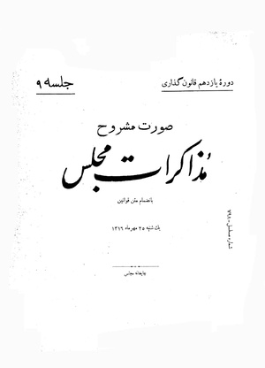 مذاکرات مجلس شورای ملی ۲۵ مهر ۱۳۱۶ نشست ۹