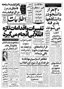 روزنامه اطلاعات روز سه‌شنبه ۵ تیر ماه ۱۳۵۸