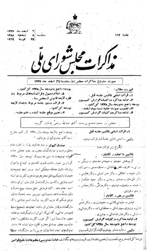 مذاکرات مجلس شورای ملی ۶ اسفند ۱۳۴۷ نشست ۱۱۲
